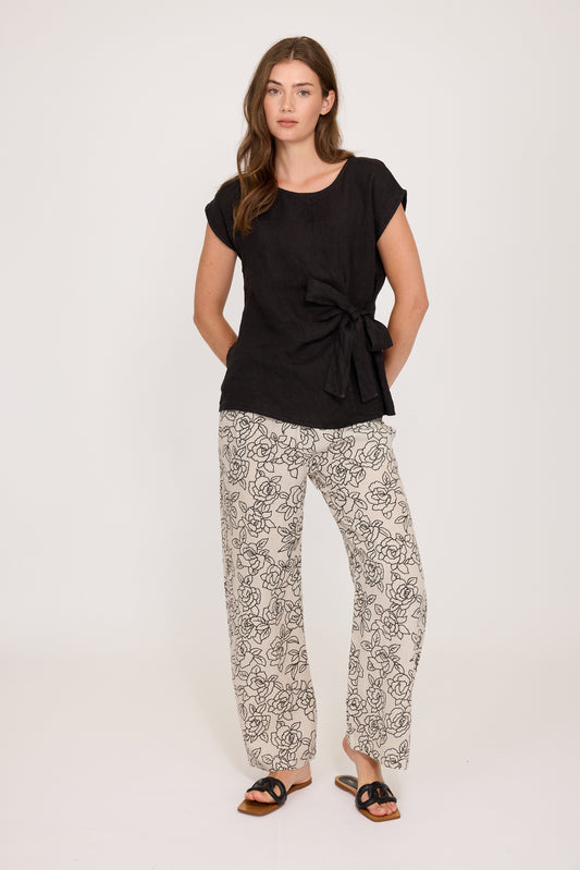 Short Sleeve Crewneck Linen and Knitted Viscose Top by Pistache